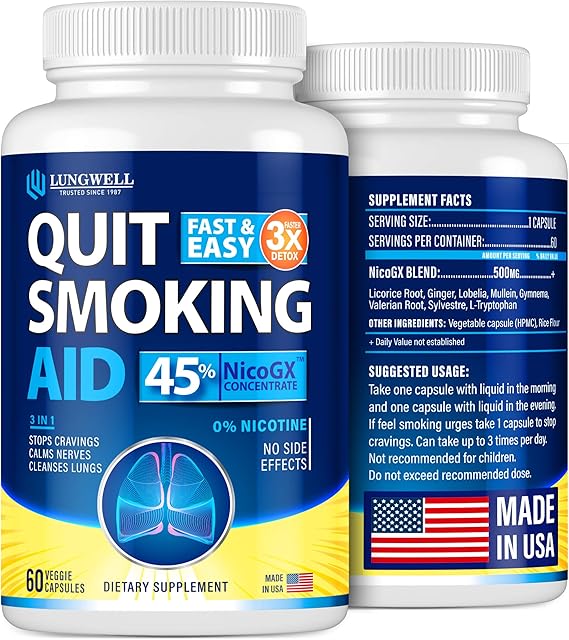 Amazon Com Quit Smoking Aid Lung Cleanse Detox Pills Made In Usa Helps To Clear Lungs Stop Smoking Infused With Mullein L Tryptophan For Lung Detox