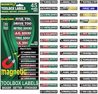 Ultimate magnetic tool box organizer labels blue edition organize boxes drawers cabinets quick easy fits all brands of steel tool chest craftsman snap on mac matco cornwell 4 3 out of 5 stars 172.